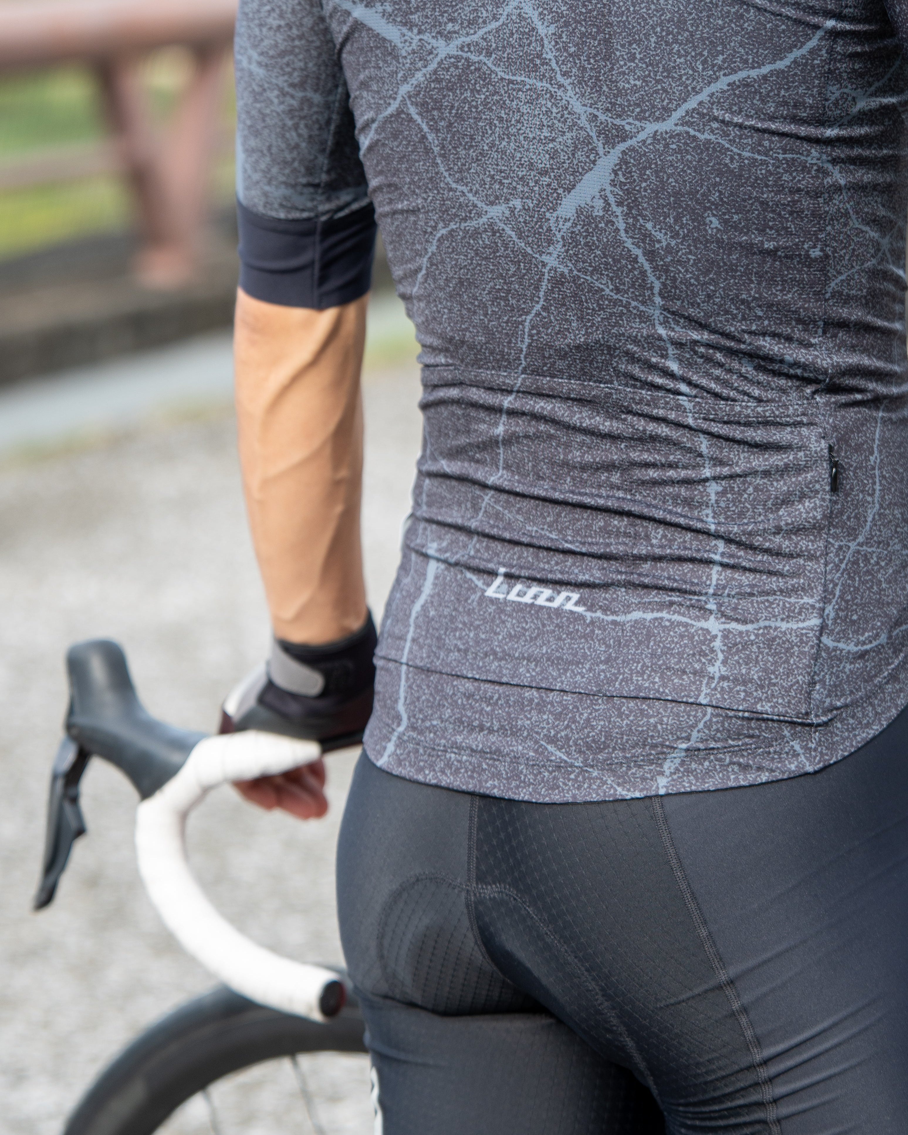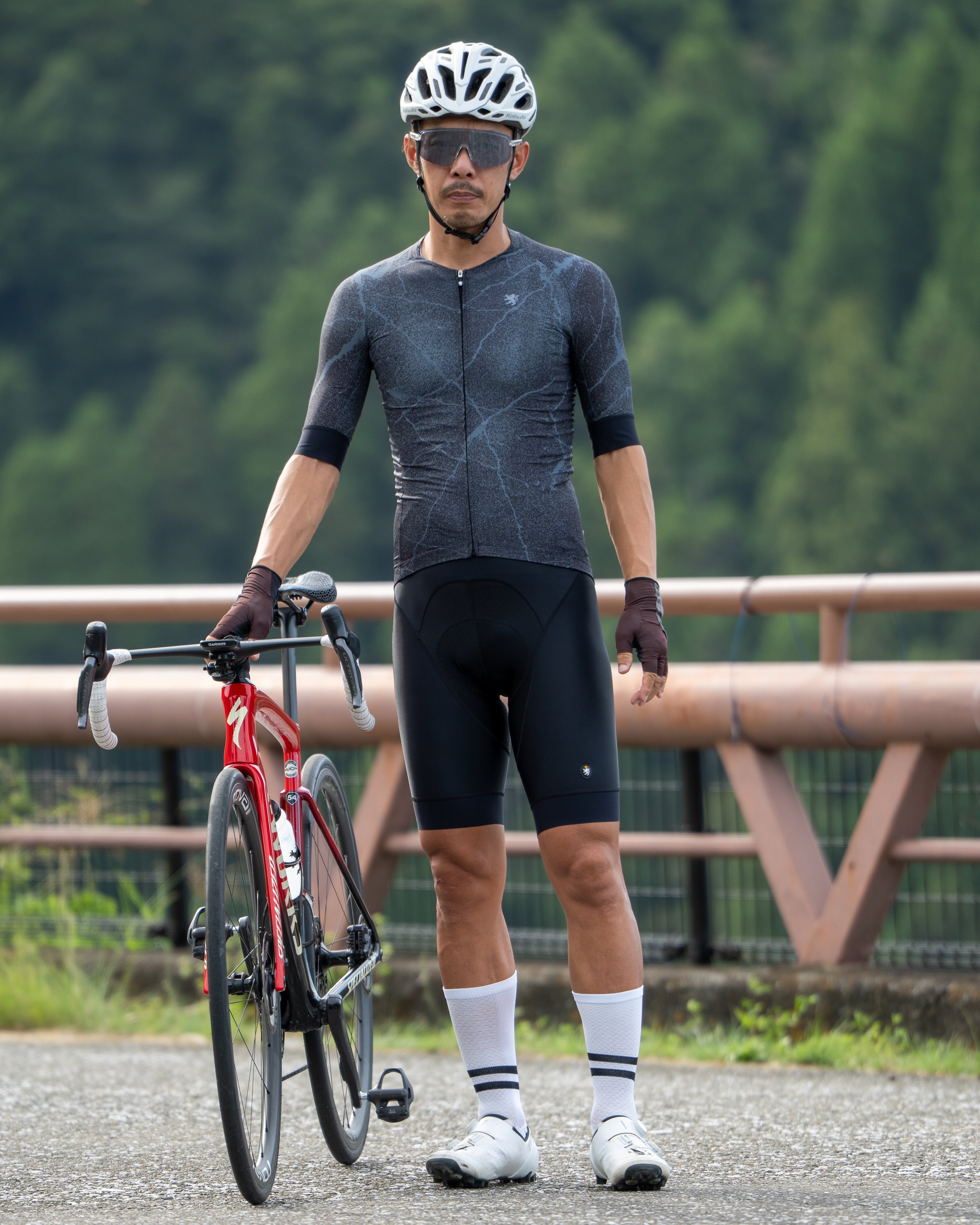 タイトなフィット感で空気抵抗を抑えたレーシングフィットの半袖ジャージ。