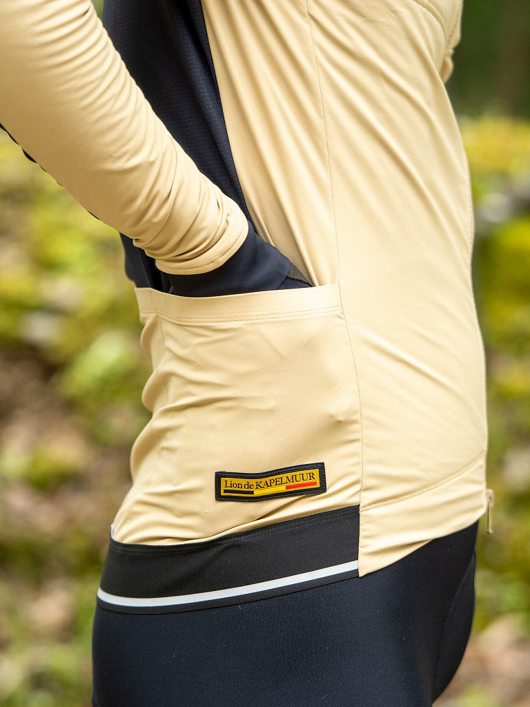 背面と袖下は通気性を重視し上質な冬用生地MITI社のTHERMODREAMを使用しています。